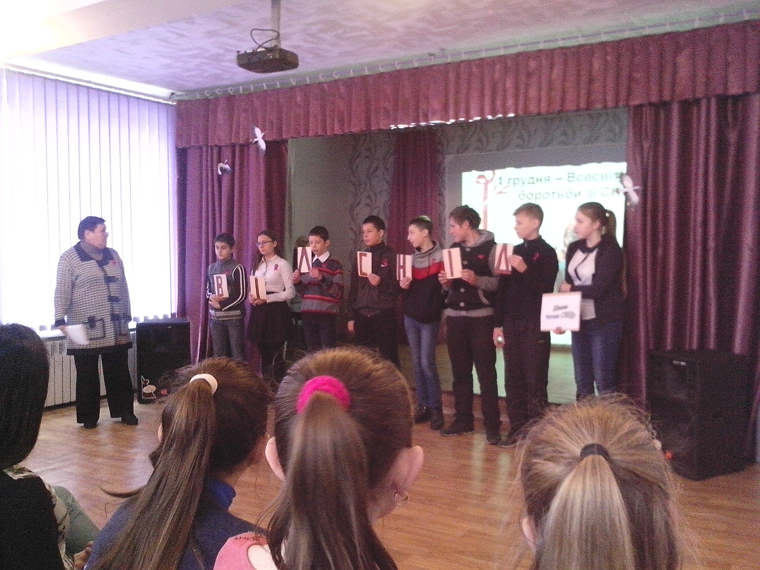 В КЗ « Тополинська ЗОШ І –ІІІст.» 1.12.17 в 5-11 класах класним керівником 8 класу Манаковою Т.М. була проведена інформаційна година «Цінуй життя і здоров ‘я » , присвячена Всесвітньому Дню боротьби зі СНІДОМ. Метою заходу було формування здорового способу життя серед учнів,профілактики певних поведінкових ризиків. Учні виступили з повідомленнями про уявлення проблеми СНІДУ в Україні ,повторили шляхи зараження ВІЛ,використовуючи інтерактивні форми : виставку-роздум ,музичну композицію, яка дала змогу проникнути в емоційну сферу особистості дитини, дозволили через емоції та почуття впливати на її свідомість. За власними бажаннями діти прикріпили серця до дерева життя. Учні відповідально віднеслись до підготовки заходу,опрацювали багато матеріалу зі шкільної бібліотеки.
